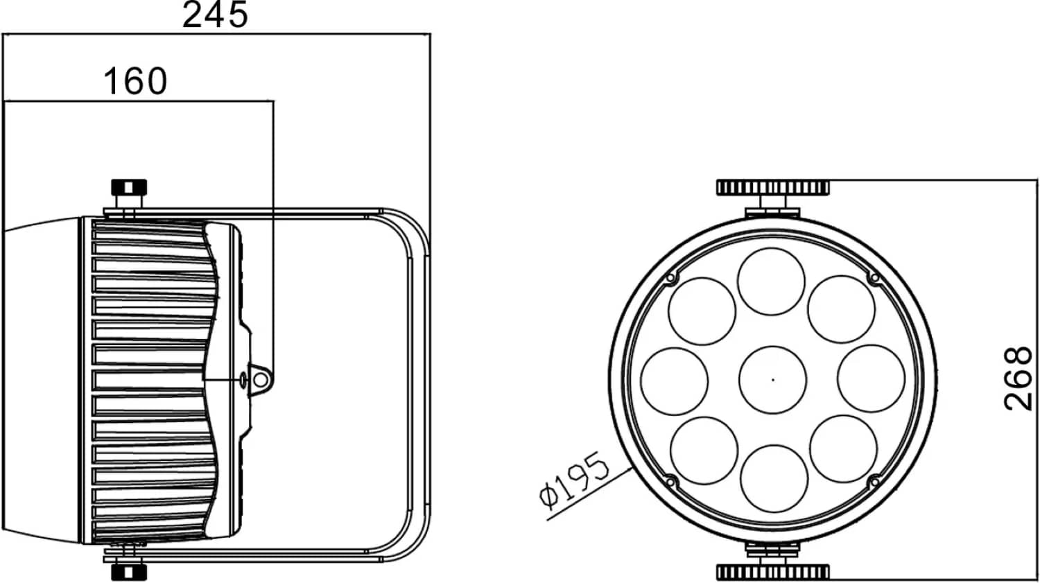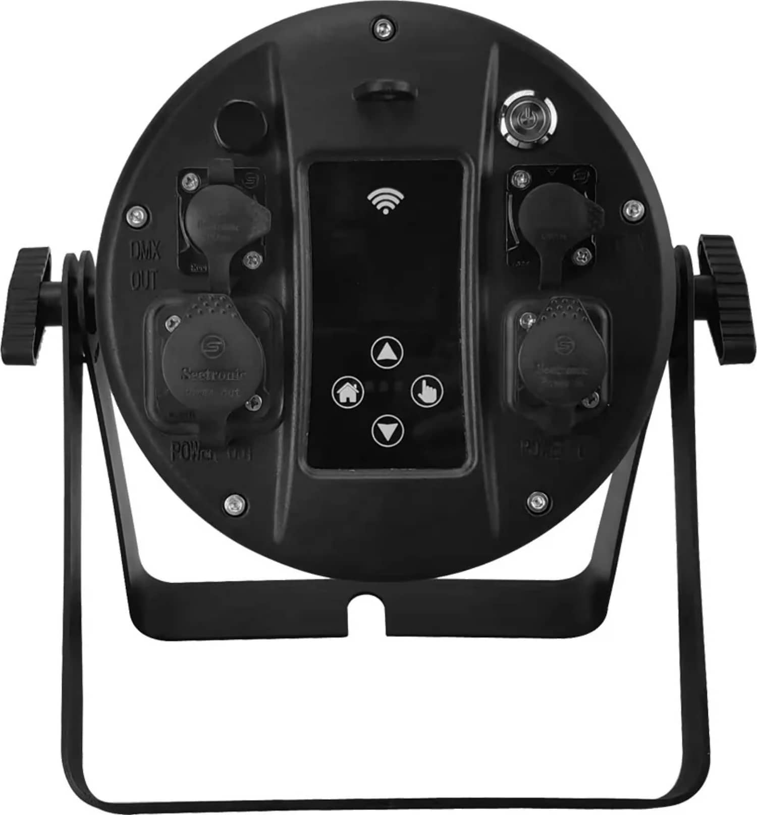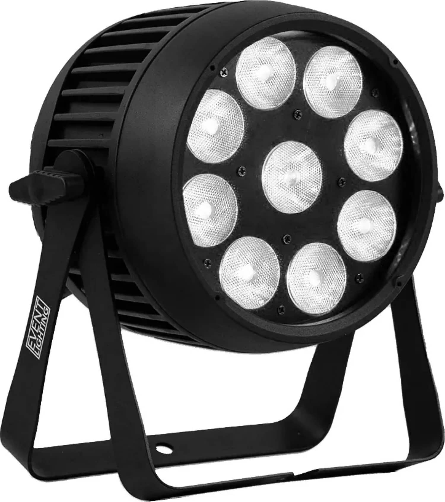 Battery powered outdoor wash light with 9 x 12w RGBWAU LED’s. Perfect for lighting tree’s building or stages outside where power is limited or running cables is difficult.
